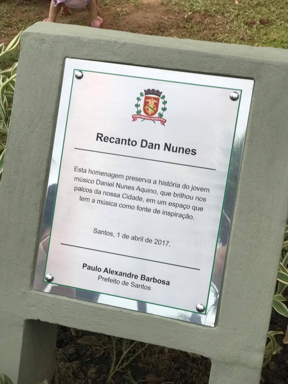 Conquistamos e concedemos esta homenagem a Dan Nunes, um músico de sucesso nos palcos de Santos que foi tirada a vida de forma injusta.